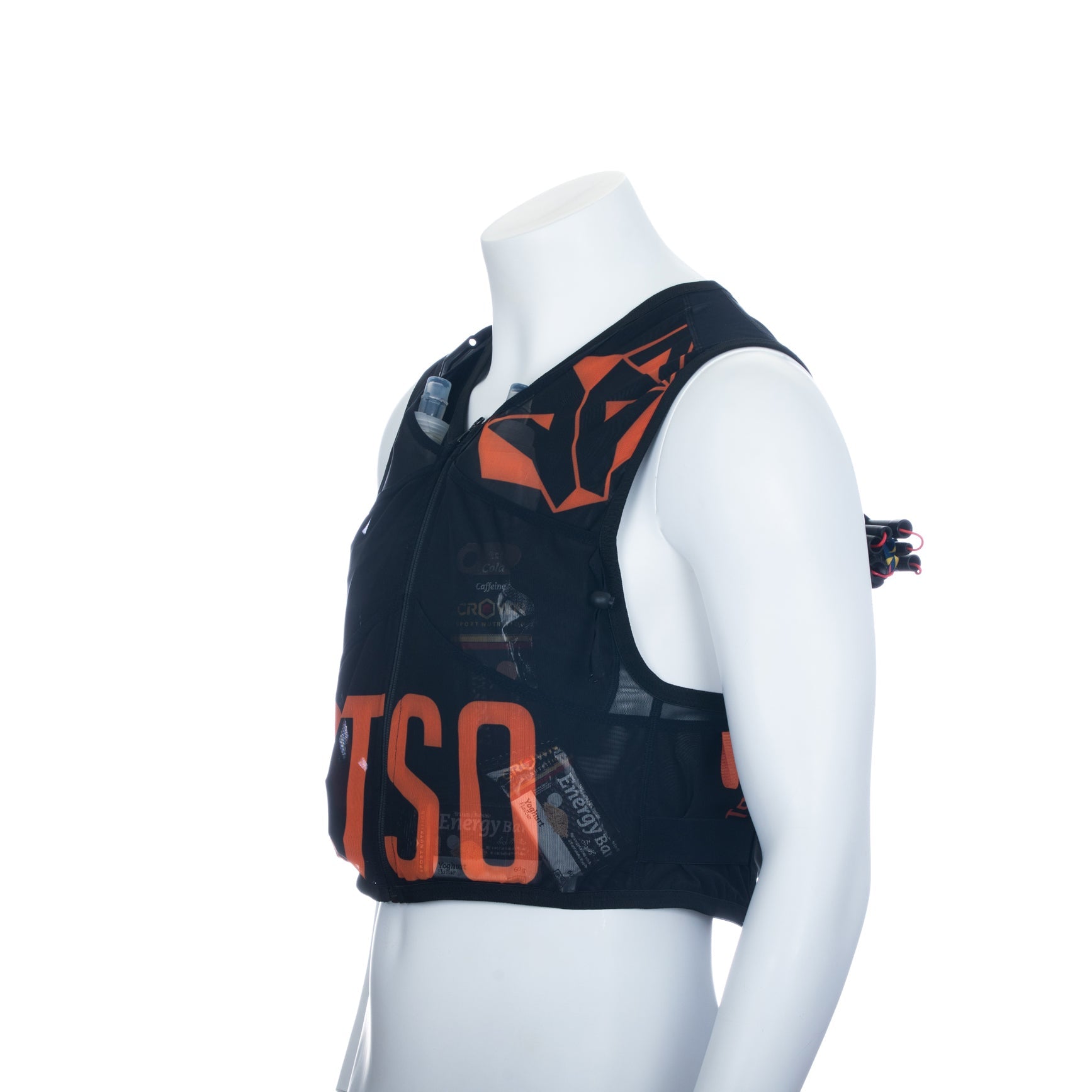 Conception fonctionnelle avec une grande capacité de stockage, avec une couverture allant jusqu'à 12 litres. Avec 6 poches avant idéales pour votre nutrition et votre hydratation (jusqu'à 4 bouteilles de 500 ml peuvent contenir sans que la buse ne sorte). Sur les côtés, 2 petites poches pour les petits accessoires ou la nutrition, comme les gels et les barres. Et sur le dos, 3 poches avec la capacité de ranger tout le matériel indispensable pour les courses et avec un accès facile, notamment la poche inférieure, avec deux ouvertures latérales.